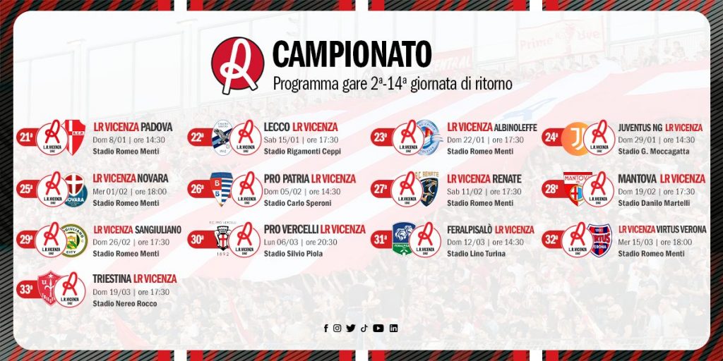 Vicenza-Padova domenica 8 gennaio alle 14.30 Di seguito gli orari dalla seconda alla quattordicesima giornata del girone di ritorno, come...