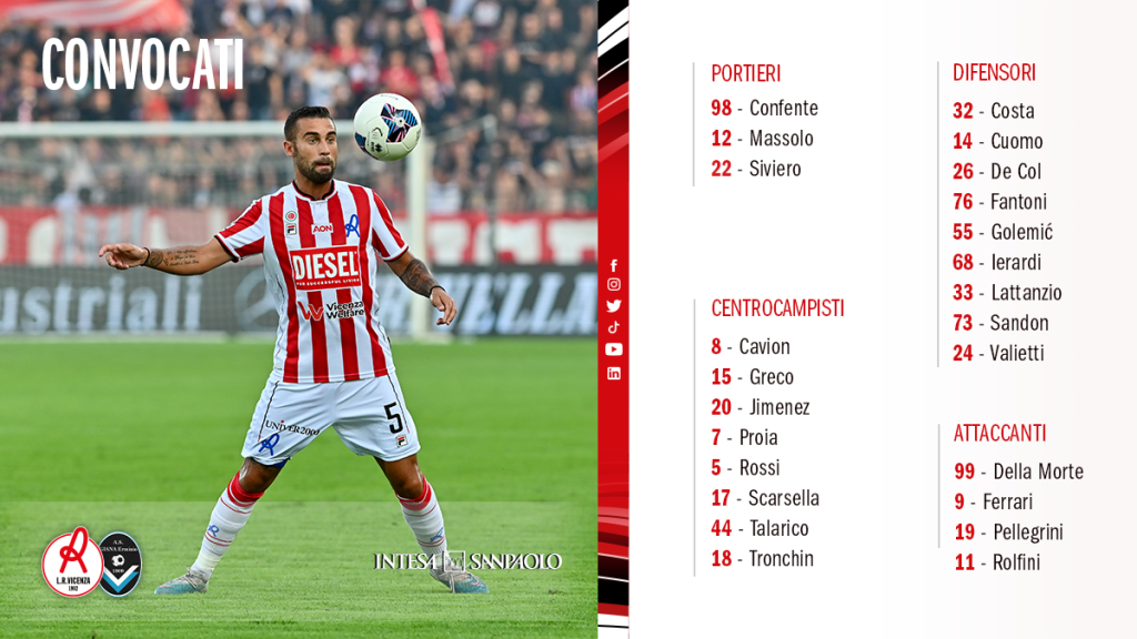 I convocati di Vecchi per Vicenza-Giana
