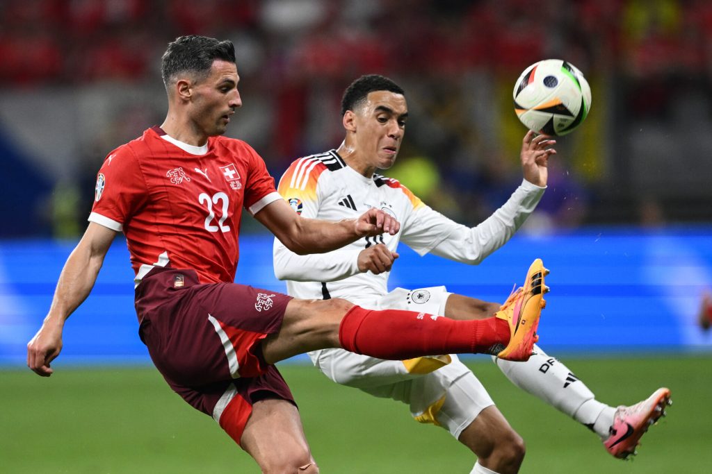 Mg Francoforte (Germania) 23/06/2024 - Euro 2024 / Svizzera-Germania / foto Matteo Gribaudi/Image Sport nella foto: Fabian Schar-Jamal Musiala