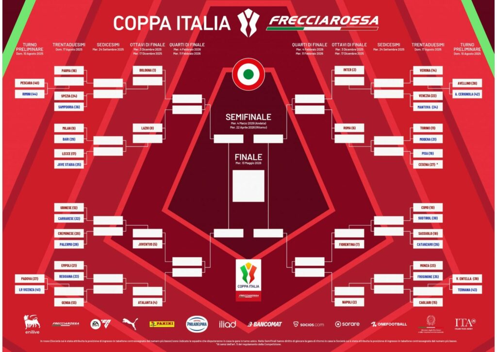 Coppa Italia Frecciarossa: apre Virtus Entella-Ternana, il Lane ospite del Padova
